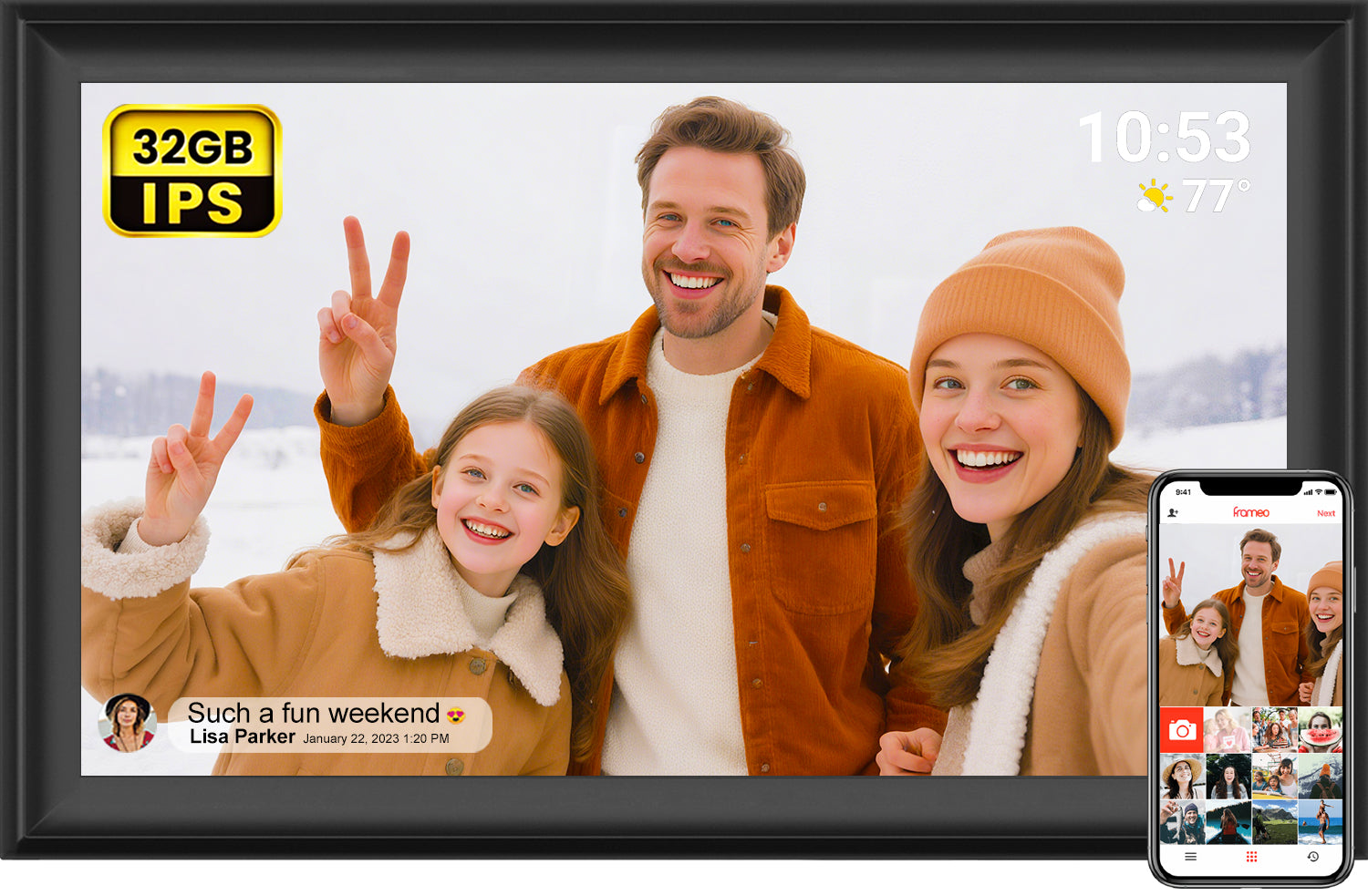 - 【SHARE PHOTOS AND VIDEO PRIVATELY, SAFELY】 Send photos or small videos (Max.15s) Via "FRAMEO APP" from anywhere in the world with dual WiFi (2.4/5GHz networks), friends and family can enjoy your wonderful moments within seconds on Akimart WIFI frame. Built-in 32GB memory, extend the storage by USB drive or SD card. Also can use USB drive or SD card import pictures or videos.