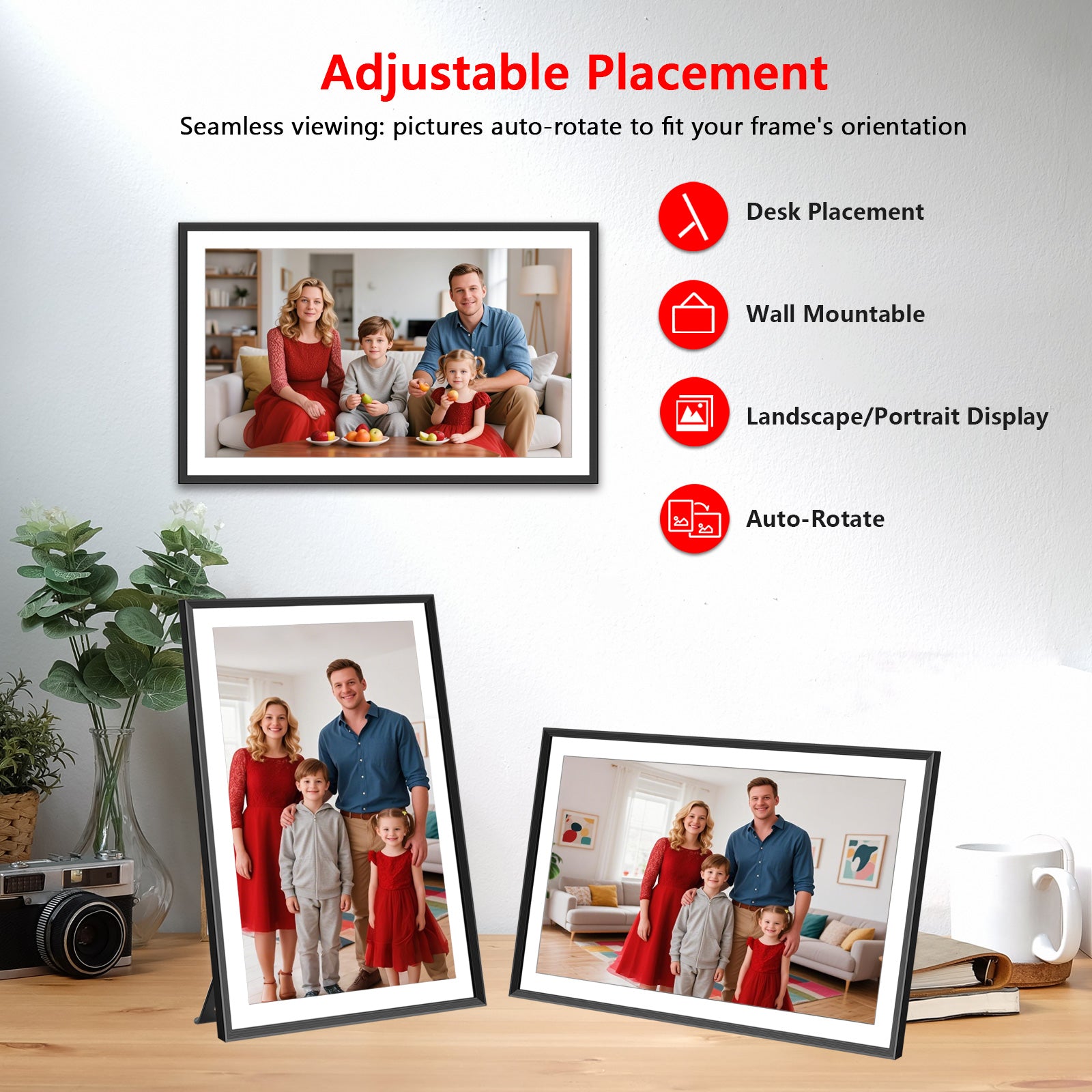 - 【FRAMEO Digital Photo Frame】Built-in 2.4GHz Wi-Fi (note: not compatible with 5GHz) lets you send photos and videos (up to 15 sec) remotely via the Frameo App—no email, cloud accounts, or fees! Invite family/friends to contribute, keeping your memories private and secure. Requires Wi-Fi connection for sharing.