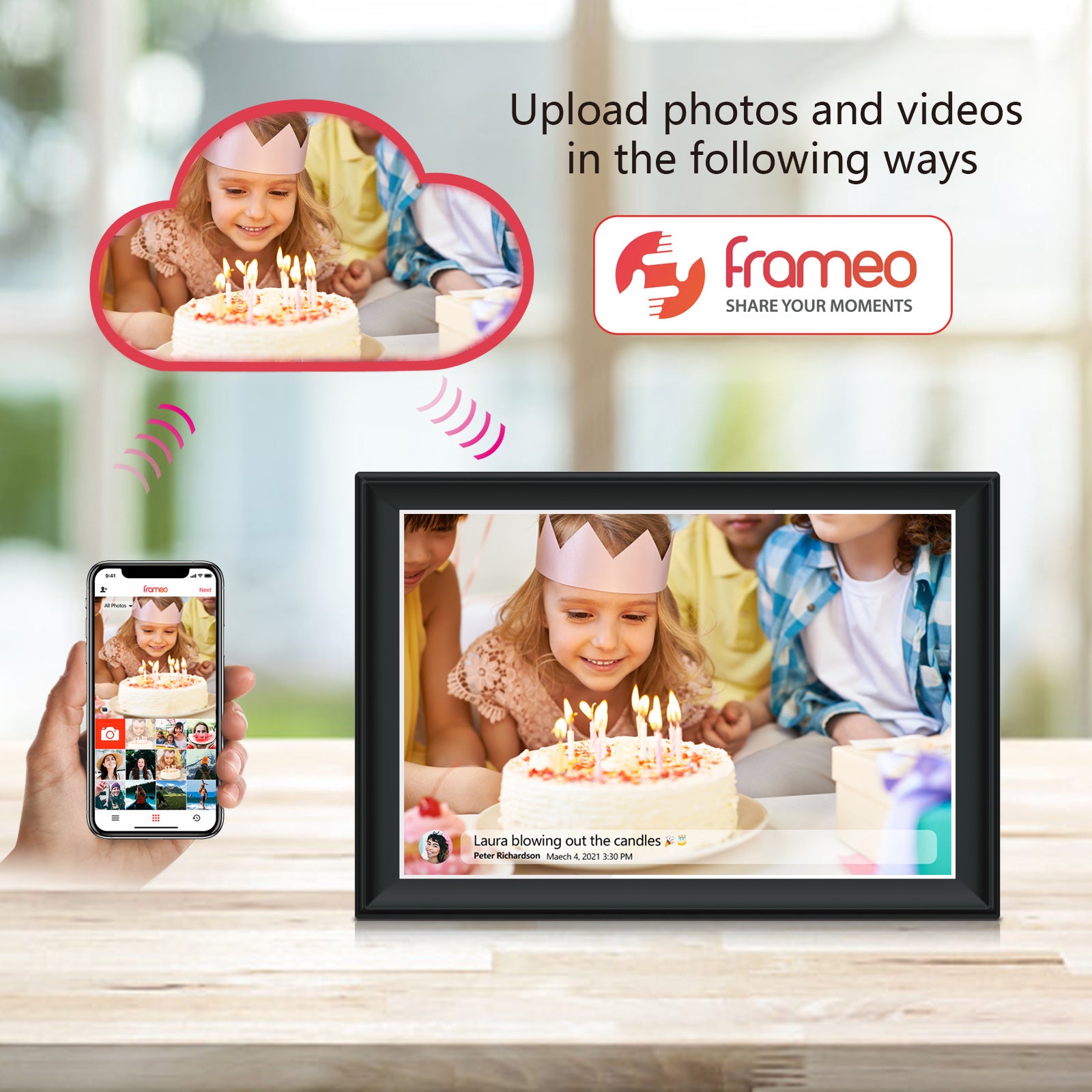 FRAMEO 10.5 Inch Smart WiFi Digital Photo Frame 1920x1280 FHD IPS LCD Touch Screen, Auto-Rotate, 64GB Storage, Support SD Card & USB Drive, Share Moments Instantly via Frameo App from Anywhere