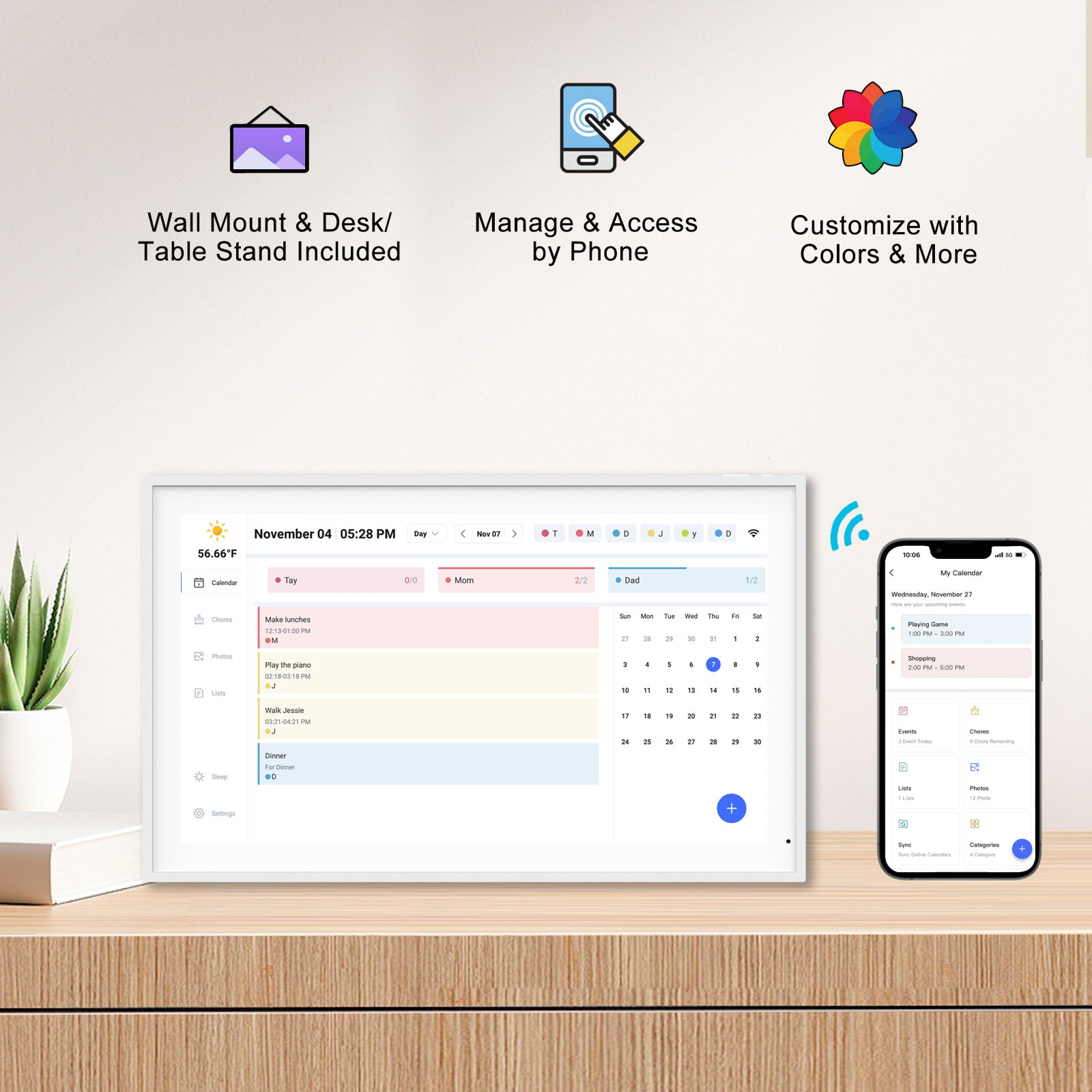 - More Than Just a Digital Calendar: Supports sending Photos & Videos by Fr-ee App, sharing wonderful moments with your family & loved ones from anywhere, more than just a digital photo frame can do.
